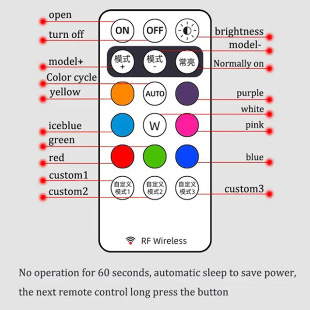 Control remoto inalámbrico para cambiar colores, modos y brillo.