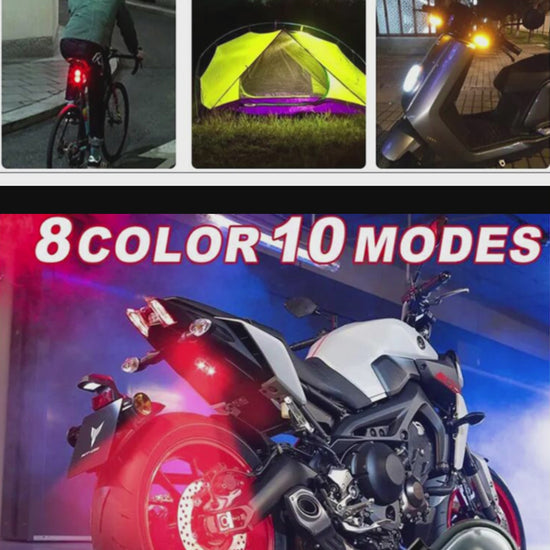 8 colores distintos y 10 modos de iluminación (fijo, intermitente, flash, cambio automático y más).